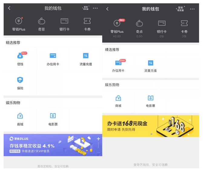 爱奇艺涉足金融圈其实早有苗头。凤凰网WEMONEY在爱奇艺客户端“我的钱包”一栏中看,爱奇艺提供的金融服务有“零钱Plus”、“办信用卡”。