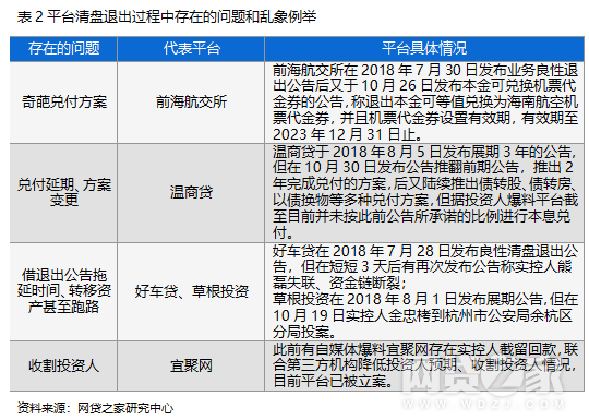 目前平台清盘退出中存在的乱象和问题主要可分为四种: