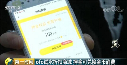 北京市北斗鼎铭律师事务所高级合伙人 祝伟:如果客户选择了置换,就意味着他放弃了主张退还押金的权利。如果,ofo公司提供的商品或者服务,价格很高或者质量很次,扣除了金币之后,还要支付的现金,就已经高于公开渠道能够购买的价格,那么金币就毫无价值,对于消费者还存在严重误导、糊弄,或者欺骗的意味。