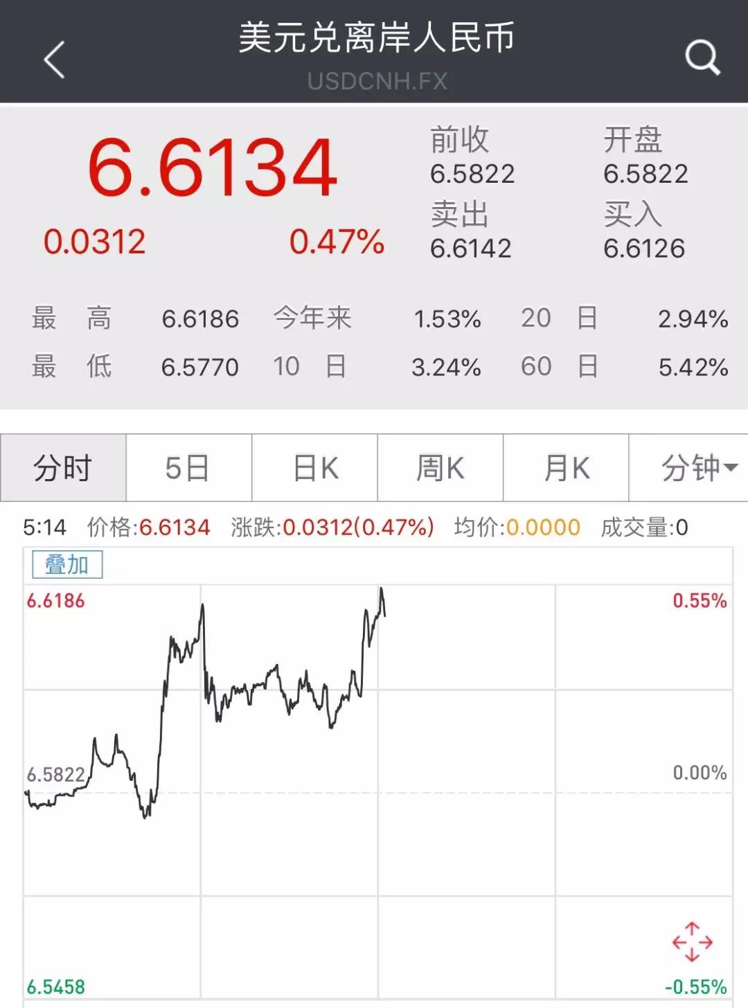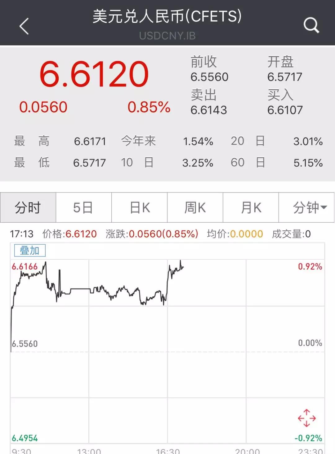 在岸、离岸人民币也跌破6.6关口