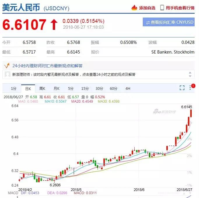 不仅人民币中间价, 27日在岸人民币兑美元跌破6.60、6.61关口。