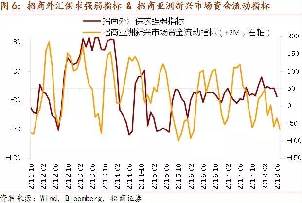 招商外汇供求强弱指标出现明显恶化,人民币走势近几日走势较弱,而与此同时美元指数并未进一步走强。新兴市场整体资本流动形势目前仍不容乐观,边际上继续恶化,这对于我国外汇供需形势将逐步带来负面影响。
