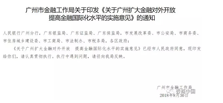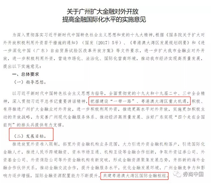 亮点二:广州打响一线城市扩大金融开放第一枪