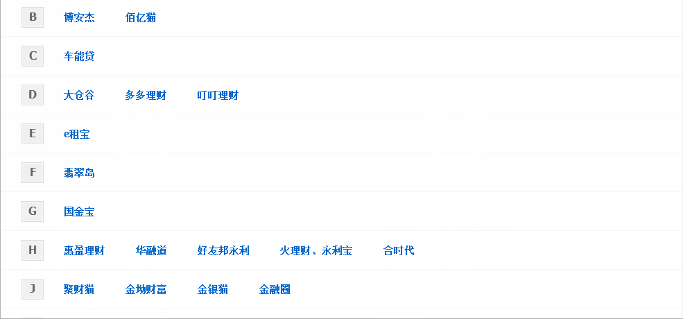 据非法集资案件投资人信息登记平台显示,又新增5家非法集资案件平台,分别为:博安杰、车能贷、大仓谷、惠盈理财、未了财富。现共有61家平台可在线登记,其中,近期开通53家包括佰亿猫、多多理财、国金宝、火理财、永利宝、聚财宝、联璧金融、唐小僧、投融家等等, e租宝、蓝天格锐、昆明泛亚等案件早已开通。