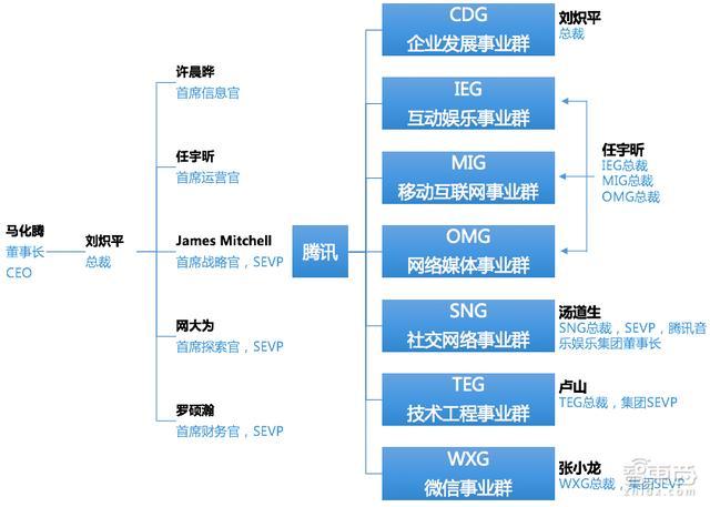 在调整之后,腾讯的组织结构如下图: