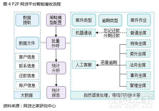 与传统金融机构纷纷成立金融科技实验室不同的是,P2P网贷领域的应用主要从业务层面着手,渗透到获客、风控及催收环节,实现P2P网贷平台运营优化,比如大数据精准获客带来成本下降及效率提升,大数据风控带来风控质量改进,智能催收带来贷后管理新模式。