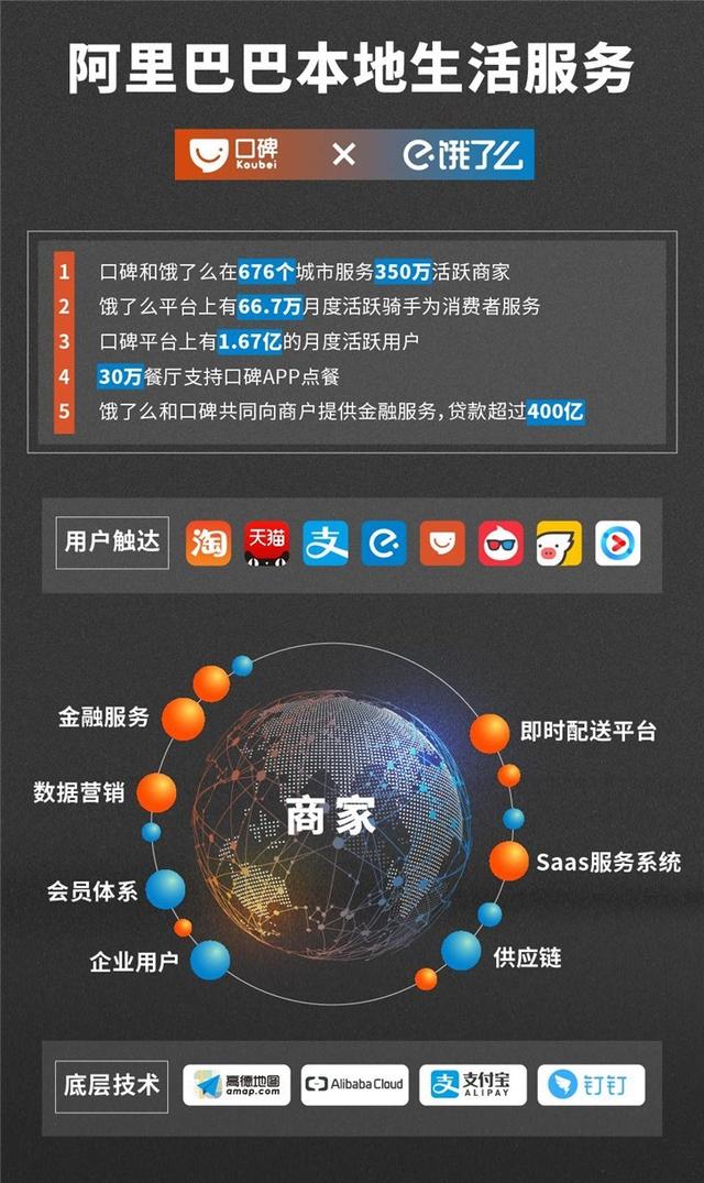10月12日,阿里巴巴集团宣布正式成立本地生活服务公司,饿了么和口碑胜利会师,合并组成国内领先的本地生活服务平台。阿里本地生活服务公司也明确了未来目标——重新定义城市生活。