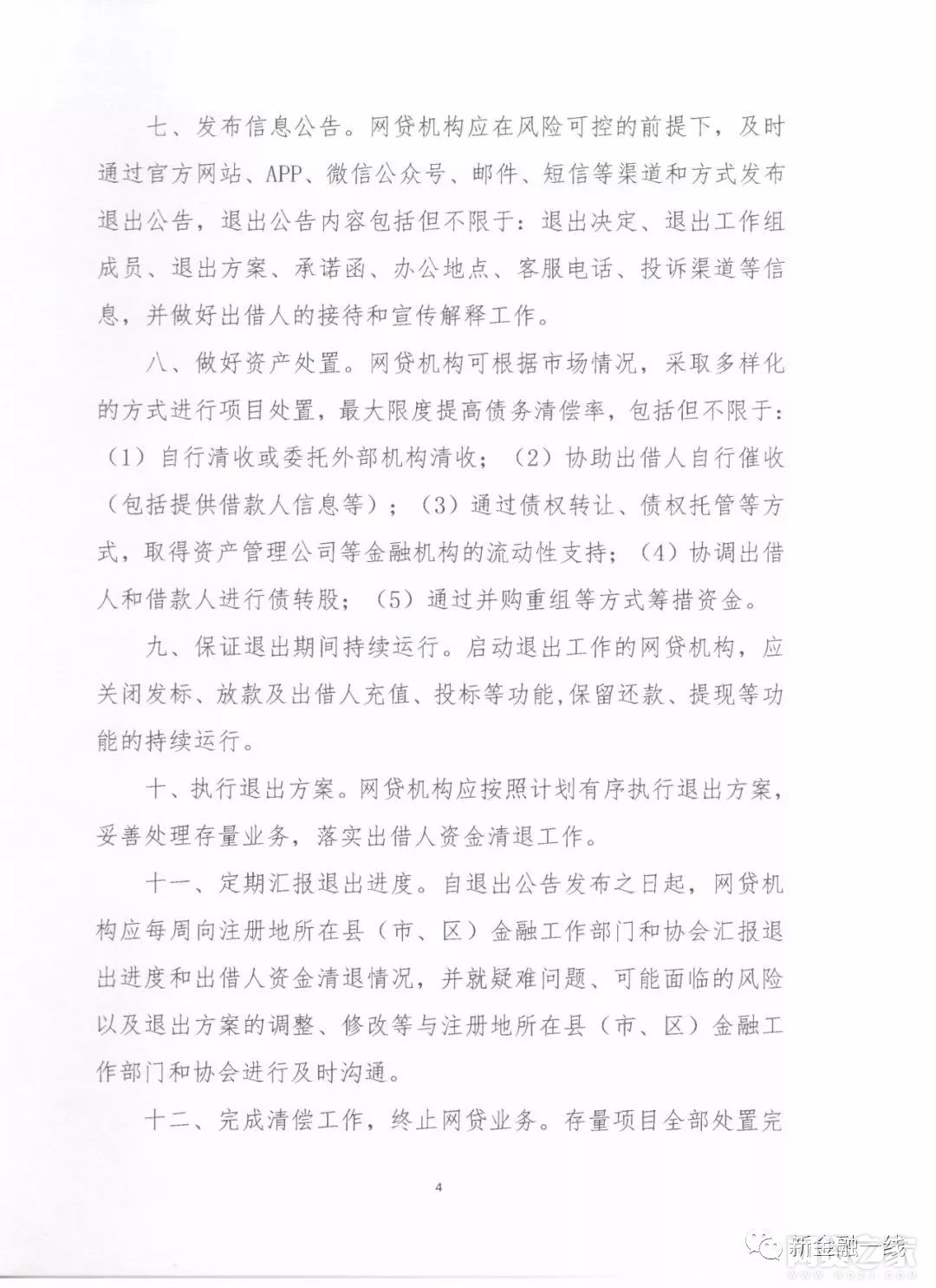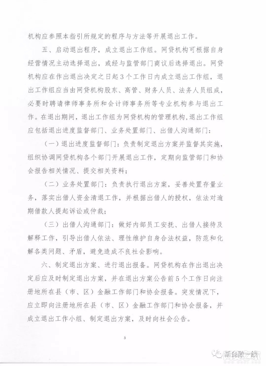 指引指出,启动会退出程序,成立退出工作组,网贷机构可根据自身经营状况主动选择退出或经与监管部门商议后选择退出。