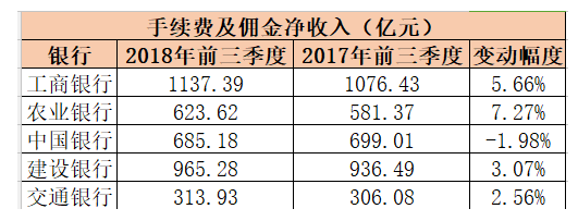 虽然建设银行今年前三季度的手续费及佣金净收入965.28亿元,同比增长3.07%,但其三季报表示,主要是由于银行卡、电子银行、托管及其他受托等产品发展良好。而理财产品受资管新规实施影响,收入出现同比下滑。此外,部分结算、代理及顾问咨询类产品受监管政策、市场环境及服务收费减免等因素影响,收入同比亦出现不同程度下降。
