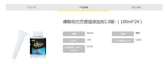 产品名称 | 德联动力方燃油添加剂 |