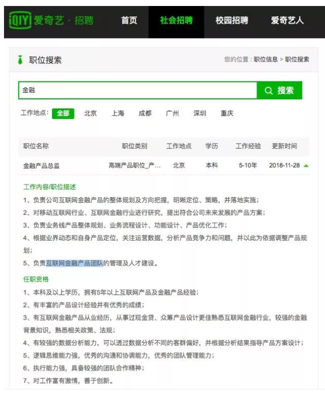 爱奇艺招聘金融产品总监