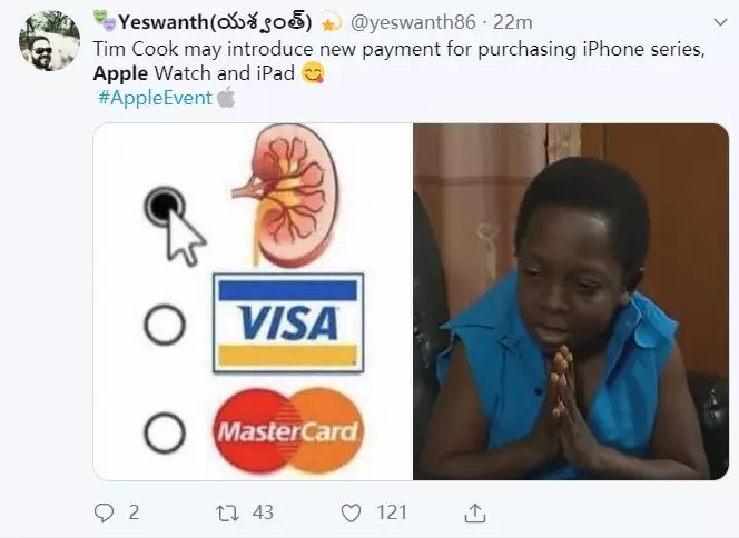 我:我真想同时拥有剃须刀和iPhone 11苹果:我懂了(图片来源:Twitter截图)