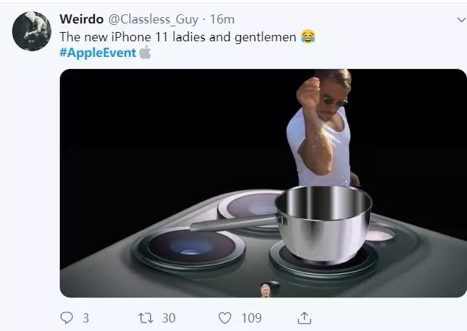 我觉得苹果设计团队在设计iPhone 11的时候肯定喝大了(图片来源:Twitter截图)