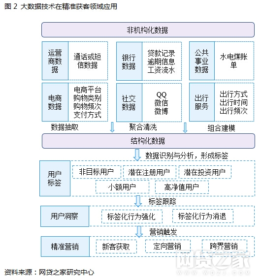 与传统金融机构纷纷成立金融科技实验室不同的是,P2P网贷领域的应用主要从业务层面着手,渗透到获客、风控及催收环节,实现P2P网贷平台运营优化,比如大数据精准获客带来成本下降及效率提升,大数据风控带来风控质量改进,智能催收带来贷后管理新模式。