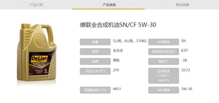 重要提示:德联全合成机油SN/CF 5W-30